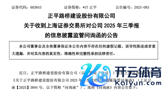 11月14日,*ST正平收到上交所对公司2025年三季报的信息暴露监管问询函。问询函提到四方面骨子。