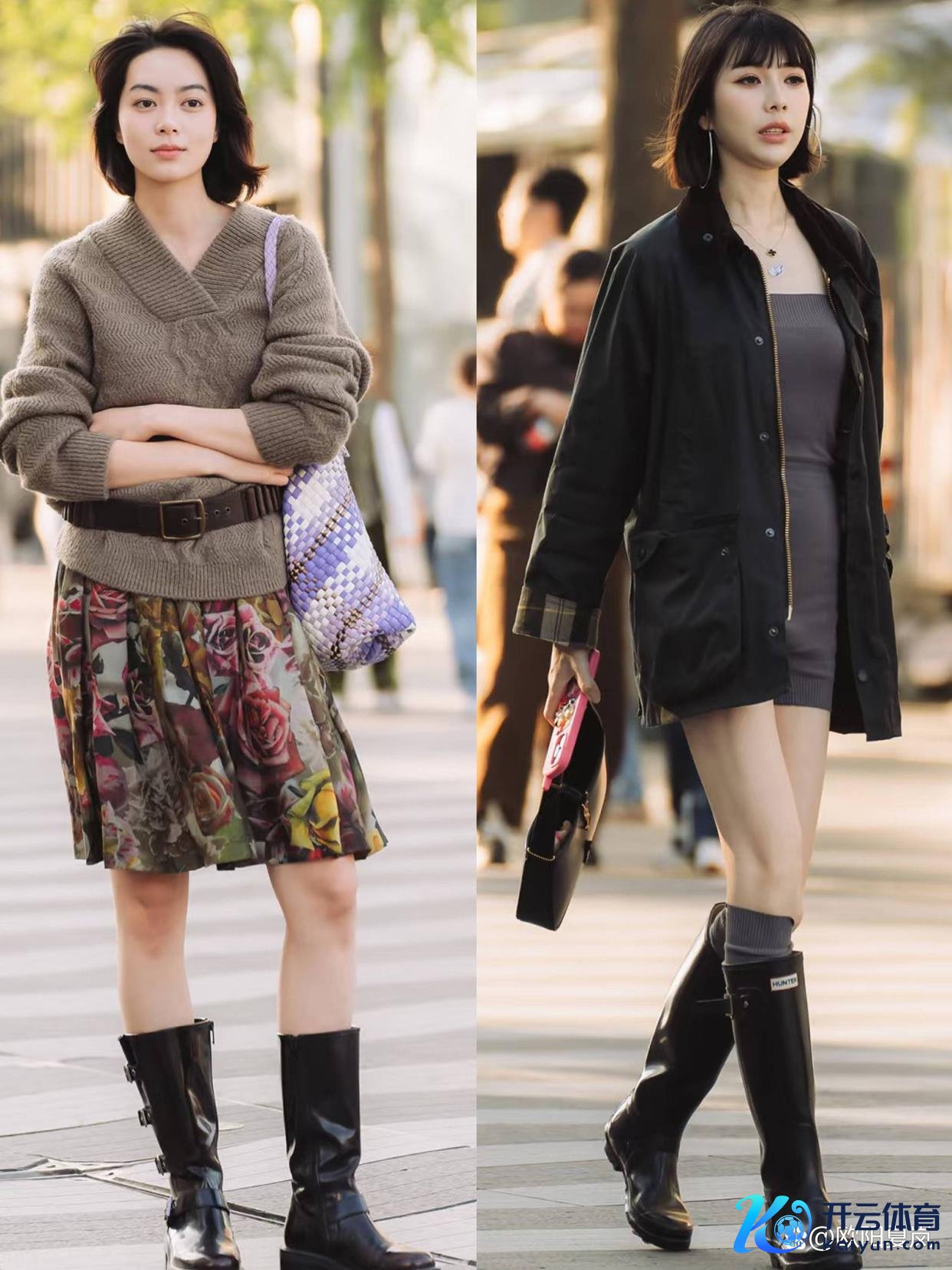 带有筹算感的裙子,当然是与个性的鞋靴更配呀。真的没思到,杭州女生还不错穿露脚趾的长靴。