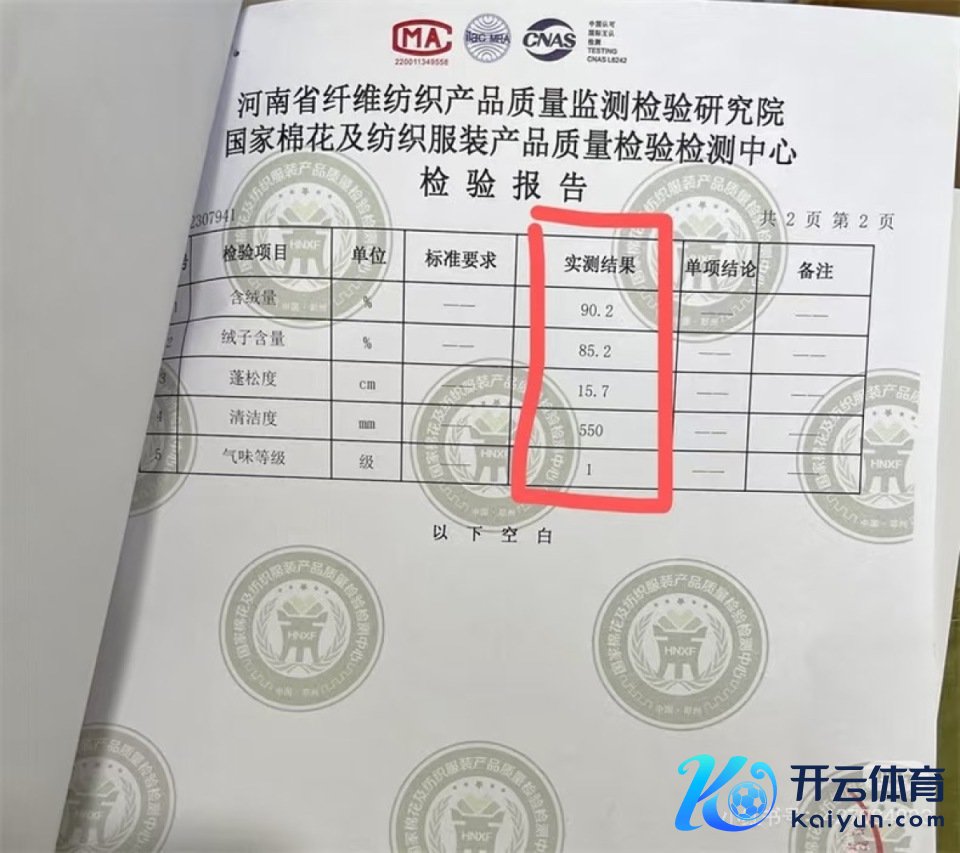 巨匠强调,如若消耗者针对羽绒服的绒子含量和充绒量进行送检云开体育,则需要提供“裁缝”,即完满羽绒服,此项检测用度省略为750元。