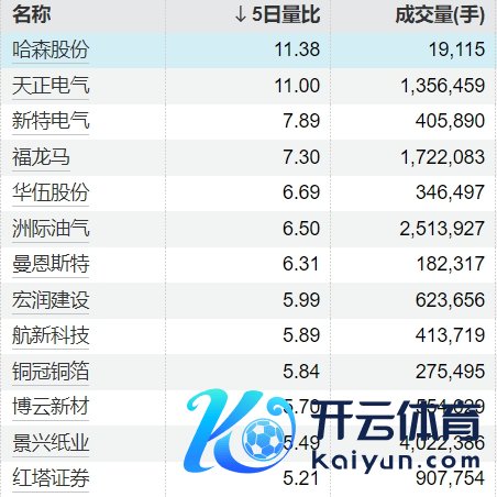 13只个股5日量比训诲5倍云开体育13只个股5日量比训诲5倍