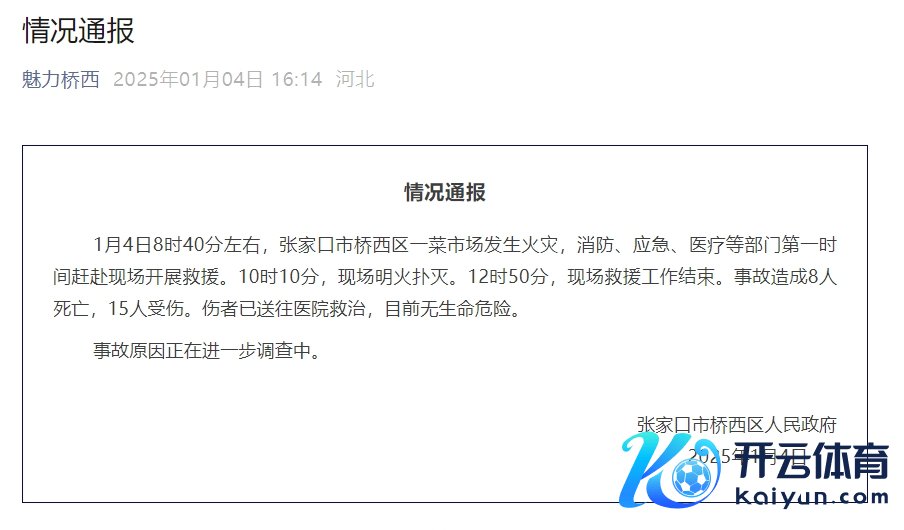 河北张家口市一菜阛阓发生失火 已致8东说念主受难15东说念主受伤河北张家口市一菜阛阓发生失火 已致8东说念主受难15东说念主受伤
