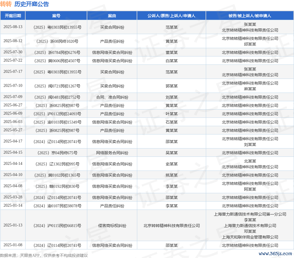 本站音讯,阐发天眼查APP涌现,近日公布了一则北京转转精神科技有限职守公司算作被告/被上诉东谈主的开庭公告,详备试验如下: