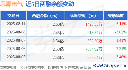 本站音书,8月11日,想源电气(002028)融资买入3277.58万元,融资偿还1689.12万元,融资净买入1588.46万元,融资余额2.54亿元。