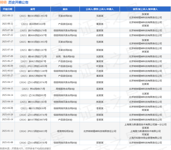 本站音讯,阐发天眼查APP涌现,近日公布了一则北京转转精神科技有限职守公司算作被告/被上诉东谈主的开庭公告,详备试验如下: 案号:(2025)浙08民终1020号审理法院:浙江省衢州市中级东谈主民法院案由:居品职守纠纷当事东谈主信息:原告/上诉东谈主:黄某某被告/被上诉东谈主:北京转转精神科技有限职守公司、邱某某开庭日历:2025年8月12日 阐发统计,近一年内以北京转转精神科技有限职守公司为当事东谈主的历史开庭公告有30则,其中案由为“信息集聚营业条约纠纷”的公告以11则居......【更多...】